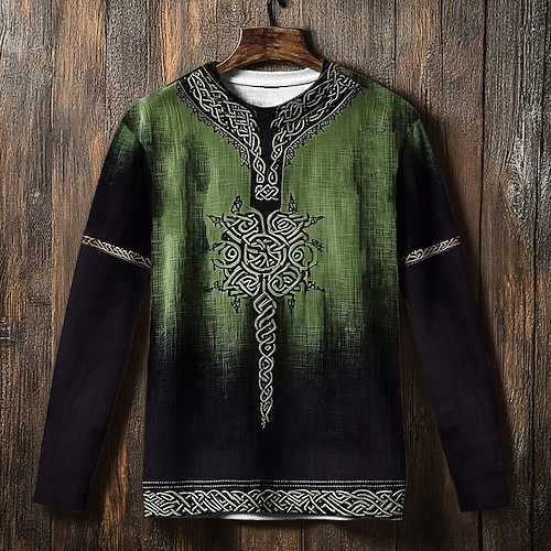 Per uomo Maglia Marrone Verde Girocollo Albero della vita Yggdrasil Nodo celtico Stampato Casuale Quotidiano Ferie Vintage Vichingo Autunno Inverno Abbigliamento Felpe con cappuccio Felpe