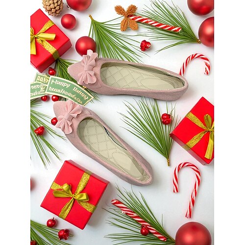 ballerine da donna con fiocco in elegante stile natalizio, perfette per outfit da festa e riunioni festive
