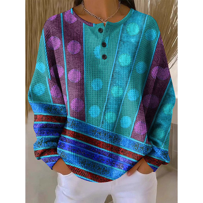 Women's Hoodies Graphic Geometric Color Block Fashion Casual Print Long Sleeve Crew Neck Round Neck Regular Tops Casual Street Buttons Blue Red Purple Green Fall Winter