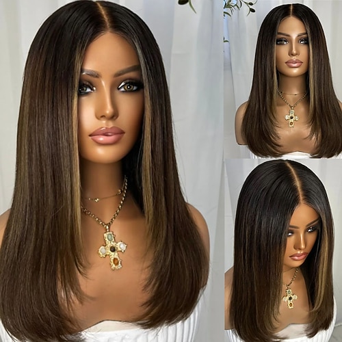 Capelli umani 5x5 Chiusura 13x4 Fronte in Pizzo Parrucca Riga centrale Capelli brasiliani Liscio Marrone Multicolore Parrucca 150% 180% Densità dei capelli con Capelli di Bambino Capelli schiariti