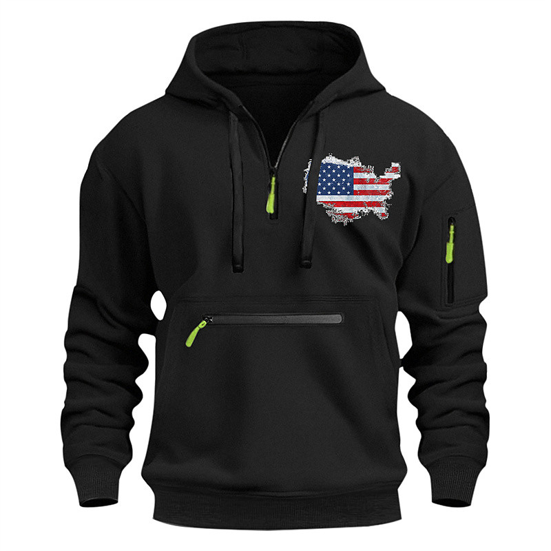 Men's Sweatshirt Quarter Zip Sweatshirt Black Navy Blue Blue Green Gray Half Zip National Flag Pocket Sports Outdoor Daily Holiday Polyester Streetwear Basic Casual Spring Autumn / Fall Clothing