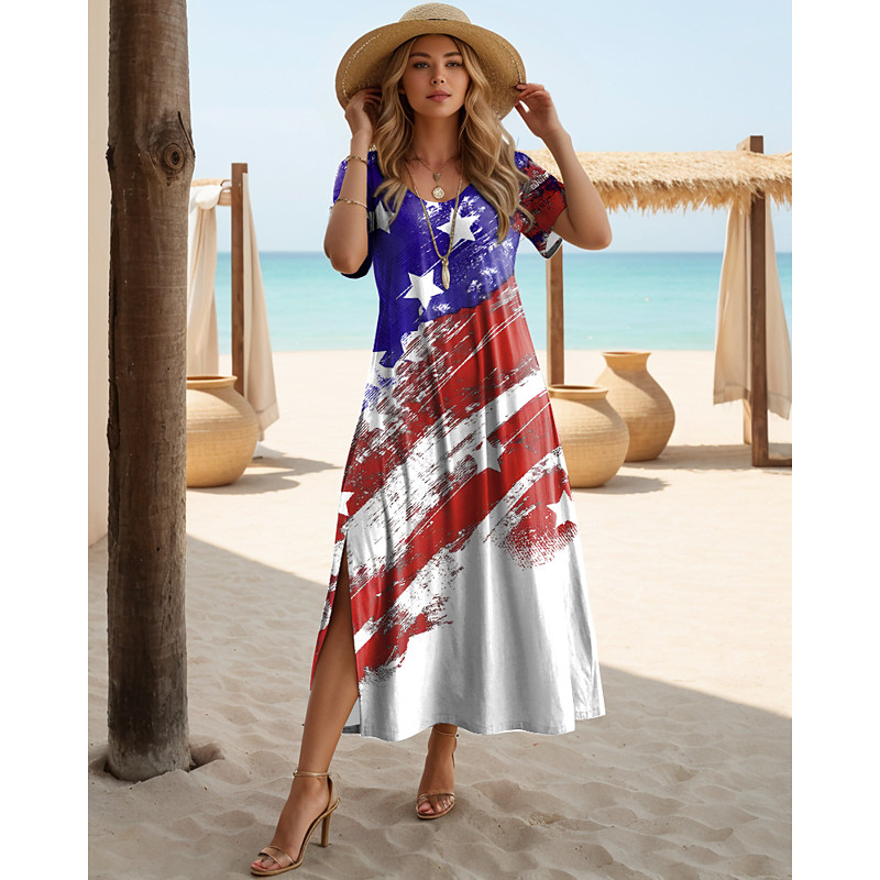 American Independence Day Women's T Shirt Graphic Letter American Flag Vintage Stylish Classic Short Sleeve Crew Neck V Neck Regular Tops Daily Weekend Print Blue Black White Red Summer Spring
