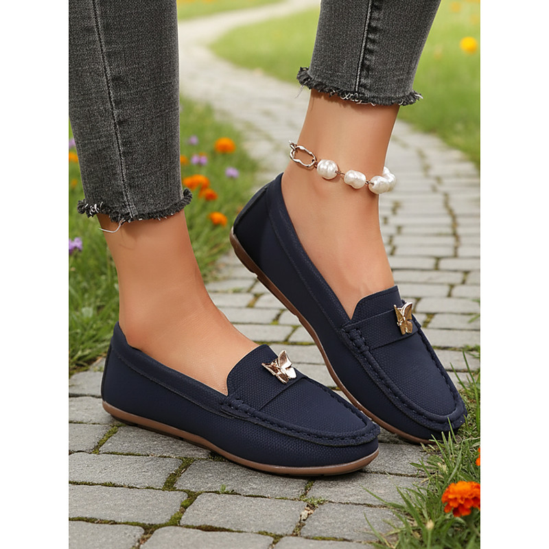 Women's Navy Blue Slip-On Loafers with Butterfly Accent – Lightweight Comfortable Casual Flat Shoes, Perfect for Daily Wear, Walking, Travel, Work Weekend Outfits