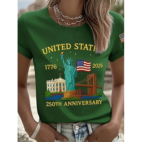 Maglietta Donna Patriottica Americana Festa dell'Indipendenza Stampa Grafica Bandiera Elegante Classica Casual Maniche Corte Girocollo Giro Regolari Tops Quotidiani Blu Nero Rosso Verde Estate