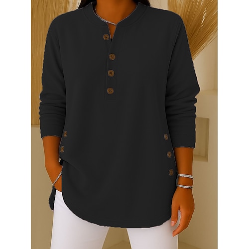 Damen T Shirt T-Shirt Einfach Elegant Mode Klassisch Langarm V Ausschnitt Normale Oberteile Täglich Ausgehen Wochenende Knöpfe Schwarz Weiß Rosa Marineblau Grau Frühling Herbst