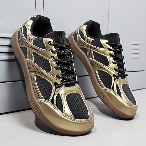 scarpe da corsa da uomo color oro e nero, design ad alte prestazioni, scarpe da allenamento resistenti per sport e fitness