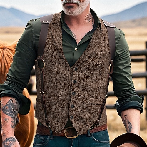 Per uomo Gilet Vacanza Feste Affari Moda Casual Primavera Autunno Tasca Bottoni Poliestere Confortevole Semplice Monopetto Un Bottone Bavero Vestibilità regolare Caffè Marrone Nero Verde Grigio