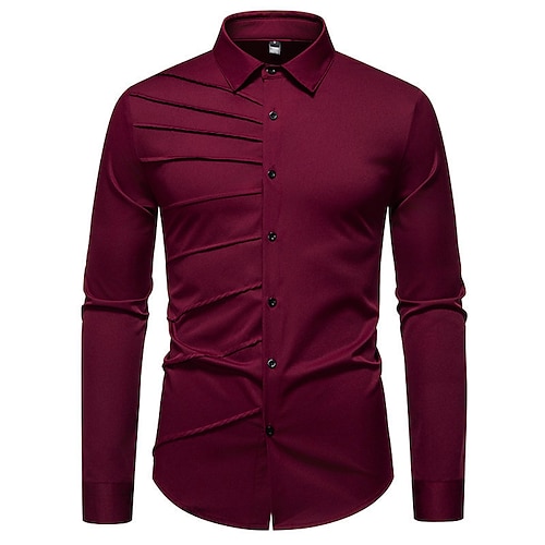 Per uomo Camicia Camicie Camicia con bottoni Rosa Matrimonio Feste Nero Bianco Vino Blu marino Manica lunga Bavero Primavera Autunno Abbigliamento