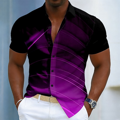 Herren Geometrisch Farbverlauf Abstrakte Kunst Hemd Knopfhemd Kurzarm Modisch lässig Täglich Outdoor Urlaub Sommer Frühling Umlegekragen 3D-Druck Leinenähnliches Hemd Blau Rote Purpur Grün