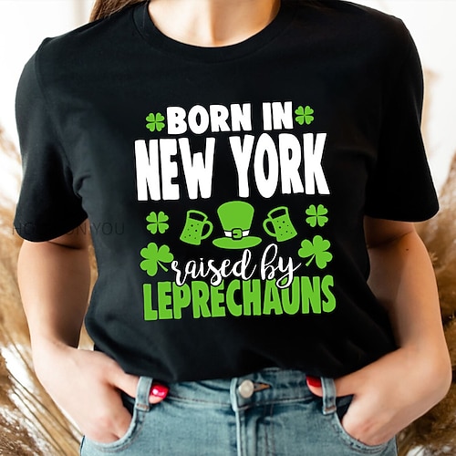 Giorno di San Patrizio Festa di San Patrizio Per donna Maglietta Trifoglio Lettera Moda Manica Corta Girocollo Top Regolari Casuale Giorno di San Patrizio Stampato Nero Primavera Estate