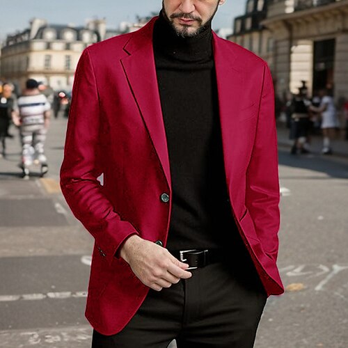 Per uomo Blazer Affari Cocktail party Ricevimento di matrimonio Moda Casual Primavera Autunno Poliestere Semplice Tasca Bottoni Confortevole Monopetto Giacca Nero Rosso Blu Viola