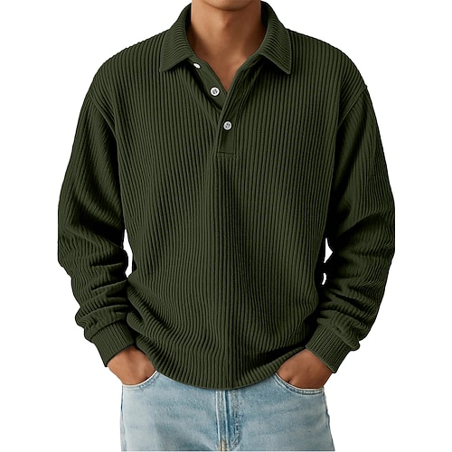 Per uomo Camicia di Velluto a Coste Testurizzato Casuale Sportivo Bavero Manica Lunga Moda Essenziale Blocco di colori Bottoni Caldo Autunno Primavera Autunno Vestibilità regolare Nero Blu scuro