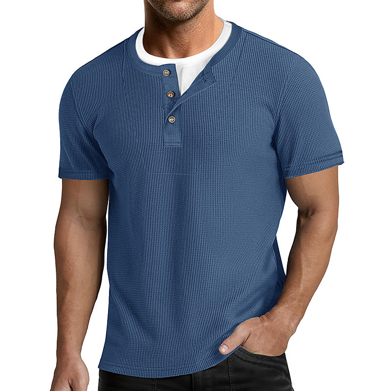 Men's Waffle Henley Shirt Tee Cotton Blend T-Shirt Short Sleeve Color Block Plain Fashion Designer Casual Color Block Buttons Fake two piece Crew Neck Henley Casual Daily Outdoor Summer All Seasons