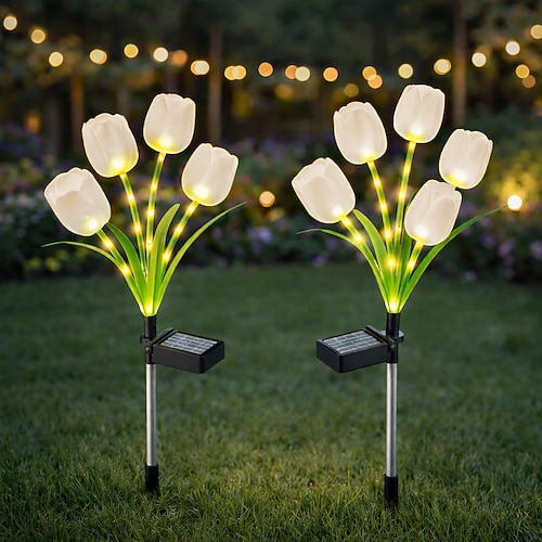 2 Stück wasserdichte LED-Tulpenleuchten mit Solarbetrieb (IP65) für den Außenbereich, 4-flammig, dekorativ für Garten, Hof, Rasen, Wege, Blumenbeete und als stimmungsvolle Landschaftsbeleuchtung für