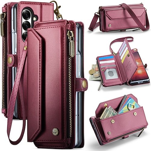 Handy Hülle Handyhüllen Für Samsung Galaxy Z Fold 7 Z Fold 6 Z Fold 5 Z Fold 4 Brieftaschenhülle Reisverschluss Mit Kartenhalter Magnetischer Flip Einfarbig PU-Leder