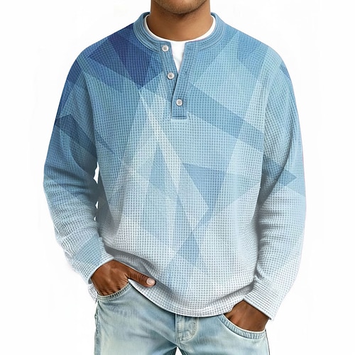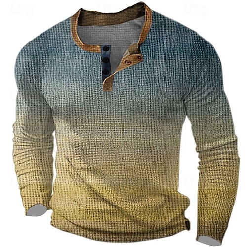 Herren Grafik Farbblock Waffel-Henley-Hemd Lässiger Stil Klassicher Stil Langarm 3D-Druck Mode Designer Basic Täglich Outdoor Frühling Herbst Blau Gelb Rote Orange Grün Henley Henley T-Shirt