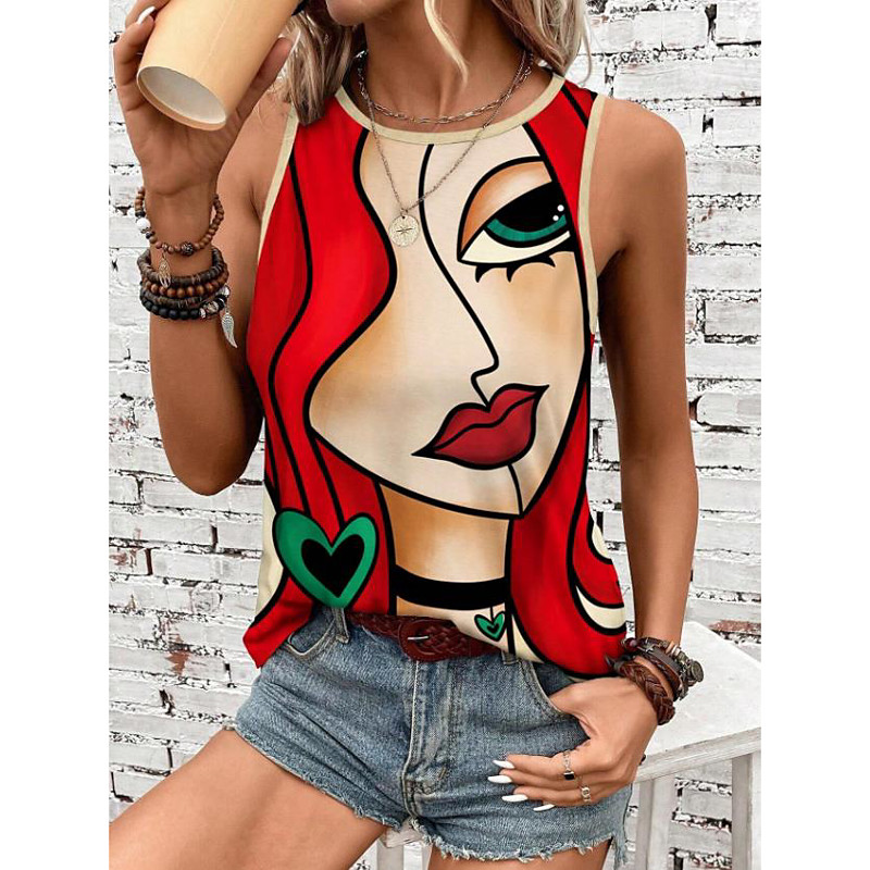 Women's Camisole Tank Top Basic Print Sleeveless Regular Tops V Neck Casual White Red Blue Gold Green