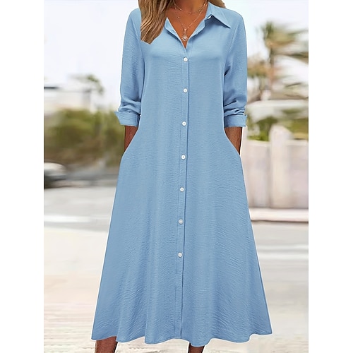 Per donna Abito Midi Abito Camicia Abito a Tubino Casual Data Vestibilità regolare Tinta unica Manica Lunga Colletto a Camicia Blu Nero Rosso Arancione Primavera Autunno