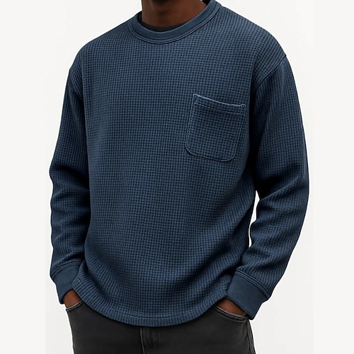Per uomo Maglietta Waffle Maglietta Manica Lunga Girocollo Primavera Tinta unica Testurizzato Maglieria Casual Tasca Morbido All'aperto Casa Sport Outdoor Nero Rosa Bianco Maglietta Top per Uomo