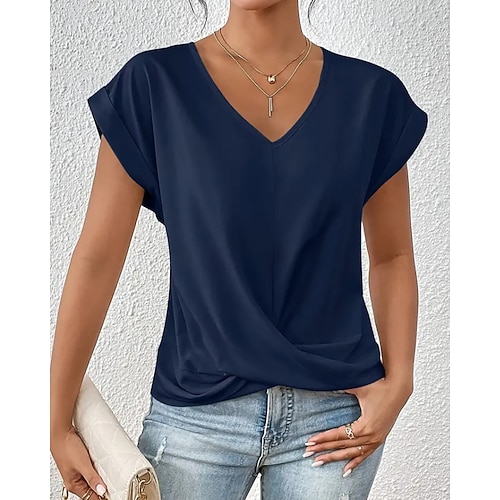 Per donna Maglietta Tinta unica Classico Casual Manica Corta Scollo a V Top Regolari Quotidiano Uscire Weekend Nero Bianco Rosa Vino Blu marino Estate Primavera