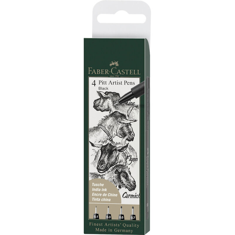 Faber-Castell Pitt Artist Pen Black, Wallet of 4 XS S F & M