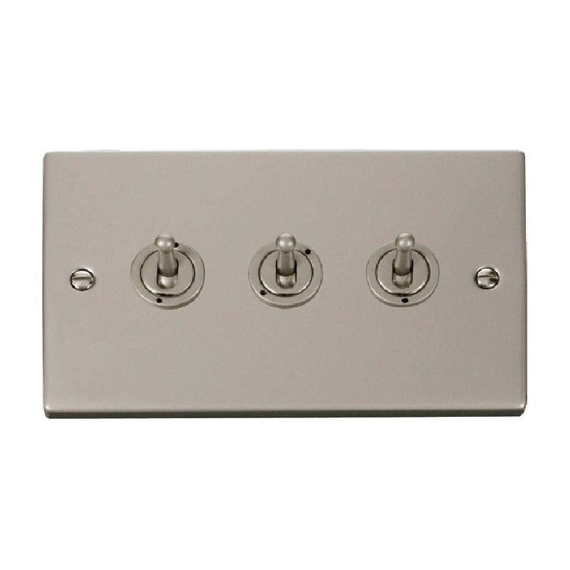 Click Deco 3 Gang 2 Way 10AX Toggle Switch Pearl Nickel