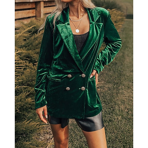Damen Blazer Samtblazer Bequem Tasche Knöpfe Mode Einfach Party Geburtstag Party / Abend Regulär Umlegekragen Normale Passform Langarm Oberbekleidung Schwarz Wein Dunkelgrün Herbst Winter