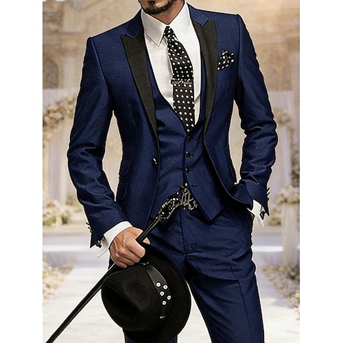 Herren Blazer Weste Anzughose Set Anzüge Geschäft Cocktailparty Hochzeitsfeier 3 Stück Mode Lässig Frühling Herbst Polyester Farbblock Tasche Knöpfe Bequem Einreihig Blazer Schwarz Wei