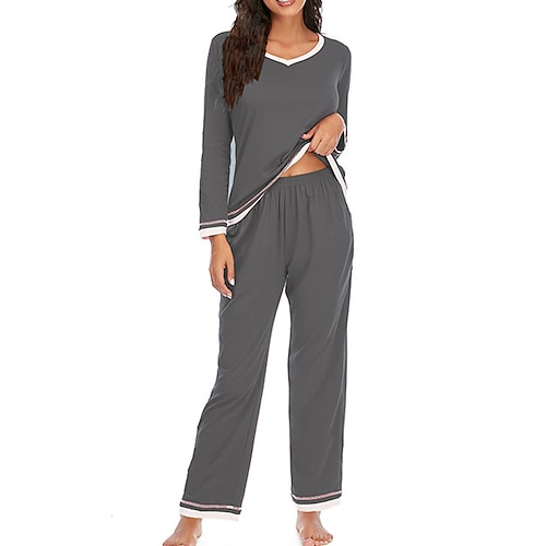 pigiama da donna colore puro casual comfort casa quotidiano cotone comfort caldo girocollo manica lunga t-shirt pantaloni elastico in vita autunno inverno abiti da casa