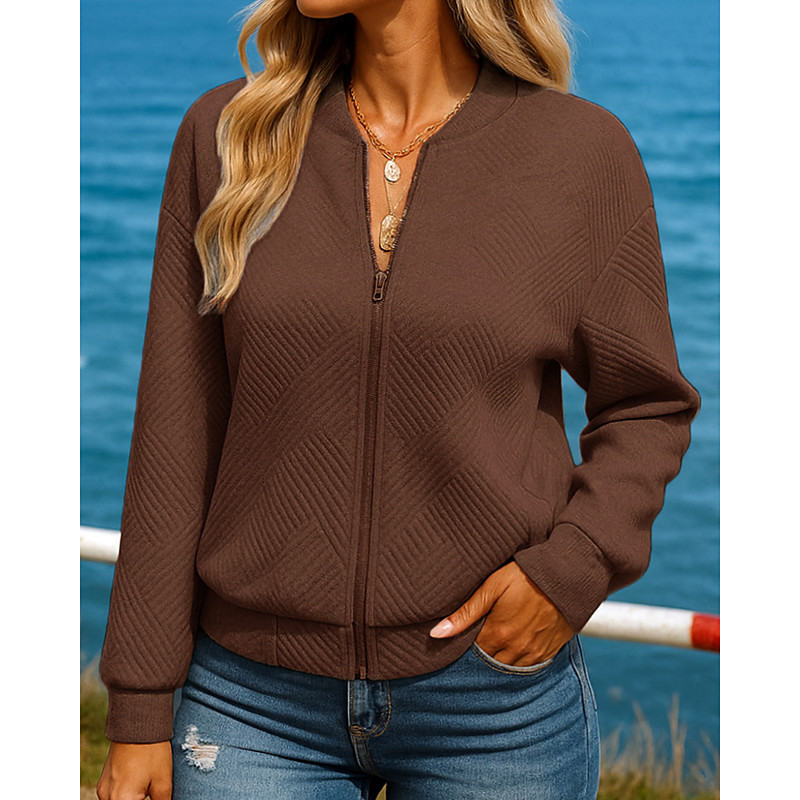 Women's Outdoor Recreation Coatv Full Zip Jacket Long Sleeve Top Athleisure Fall Solid Colored Fashion Outdoor Travel Sportswear Activewear Black White Green