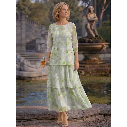 Linea ad A Lunghezza al pavimento Lunghezza alla caviglia Abito Formale Abito da cerimonia per signora Manica 3/4 Scollo a Barca Elegante Vintage Casual Formale Chiffon Jacquard con Stampa floreale