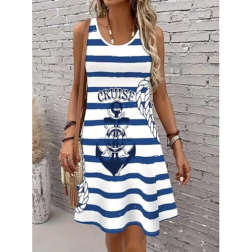 Per donna Abito al ginocchio Vestito Estivo Abito a trapezio Abito a spalle scoperte Vacanza Casual Boho Spiaggia Ferie Vestibilità regolare Grafico Geometrico A righe Senza Maniche Girocollo Scollo