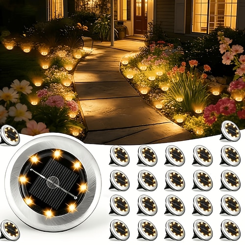 16 Stück Solar-Gartenleuchten für den Außenbereich, wasserdicht (IP44) mit je 8 LEDs, dekorative Erdspießleuchten für Hof, Rasen, Blumenbeet, Bauernhof, Terrasse, Einfahrt, Landschaftsgestaltung und
