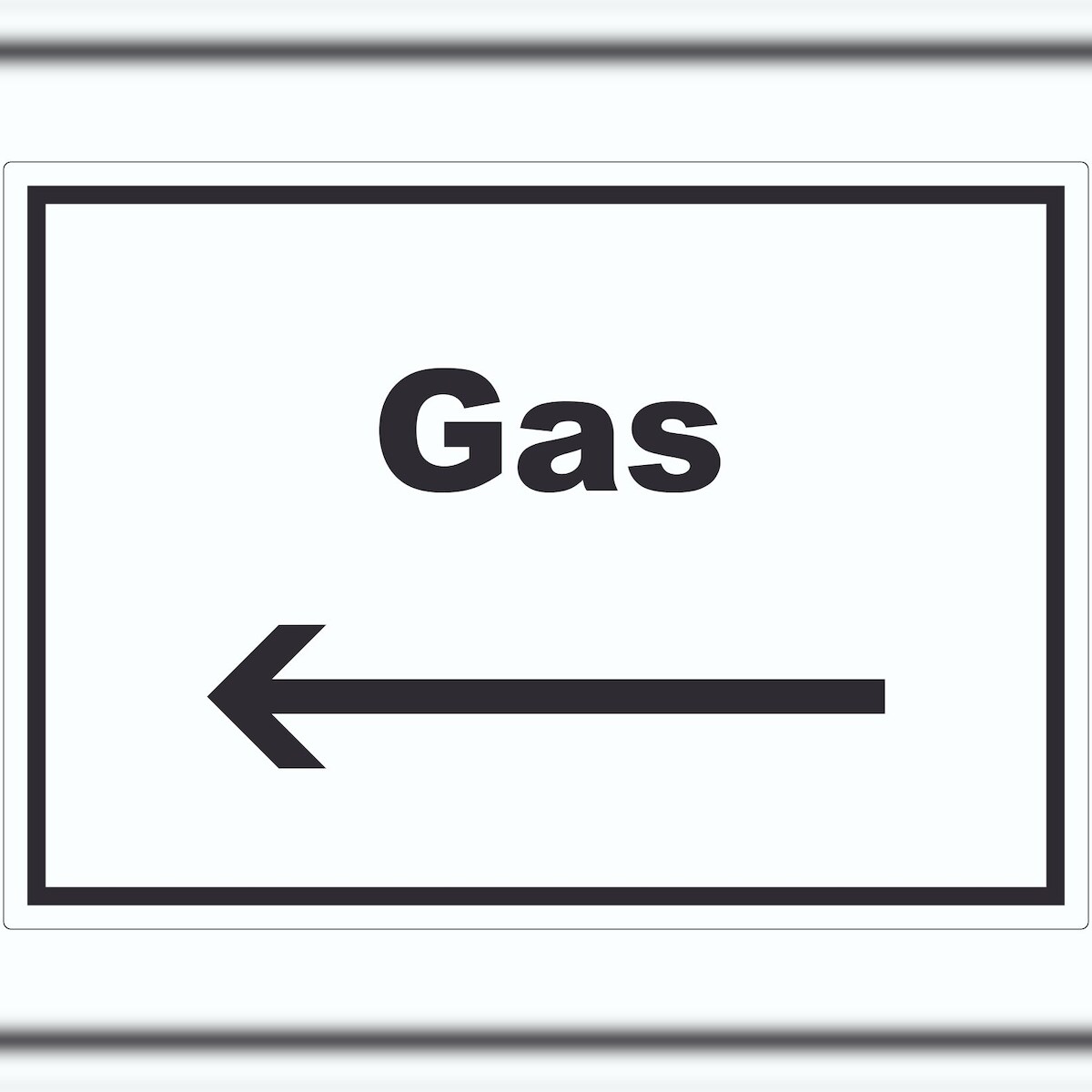 HB-Druck Gas Aufkleber mit Text und Richtungspfeil links Anschluss waagerecht A0 (841x1189mm)