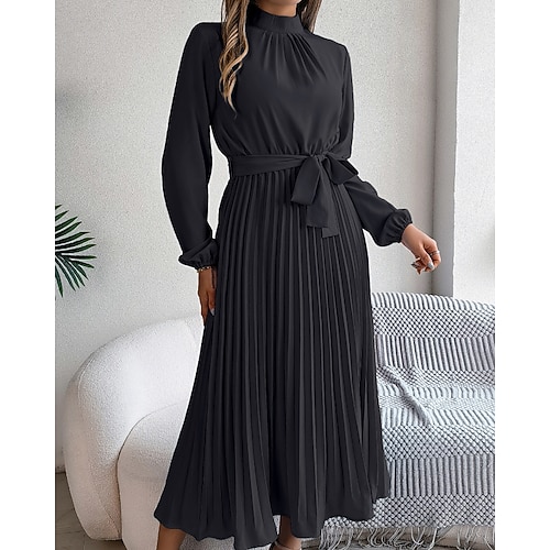 Per donna Abito Lungo Maxi Abito Vestito da Festa Abito da Cocktail Abito arricciato Elegante Moderno Festa serale Feste Occasione speciale Vestibilità regolare Semplice Manica Lunga Girocollo Nero
