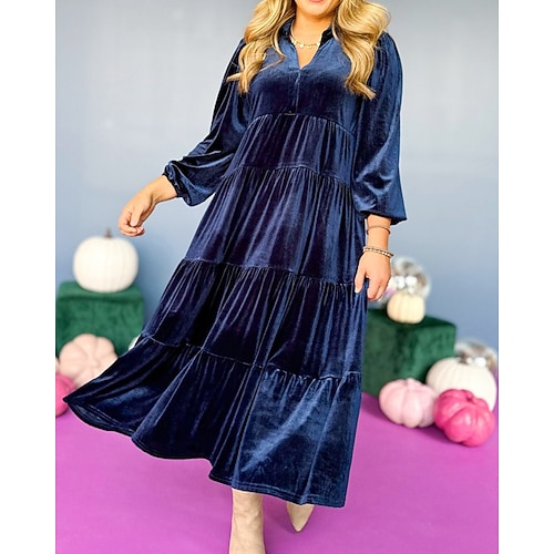 Per donna Abito Midi Abito in Velluto Vestito da Festa Abito da Cocktail Elegante Moda Moderno Festa serale Feste Vestibilità regolare Semplice Manica Lunga Colletto a Camicia Nero Giallo Verde scuro