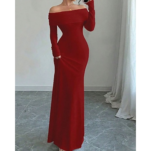 Per donna Abito Lungo Maxi Abito Abito nero Tubino Elegante Moda Moderno Quotidiano Ufficio Feste Vestibilità regolare Semplice Manica Lunga Senza Spalle Nero Bianco Rosa Vino Primavera Autunno