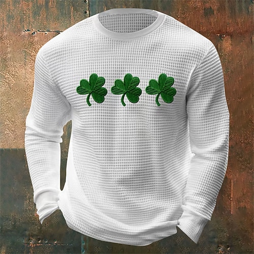 Giorno di San Patrizio San Patrizio Festa di San Patrizio Per uomo Trifoglio Camicia a nido d'ape Maglietta Manica Lunga maglietta Girocollo Camicia Sport Moda Classico Quotidiano Vacanza Feste Nero