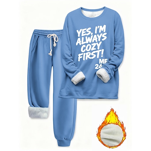 Per donna Quotidiano Elegante Set da due pezzi Tuta Set di Pantaloni Manica Lunga Girocollo Lettera Coulisse Stampato Casuale Quotidiano Nero Rosa Blu Autunno Vestibilità regolare