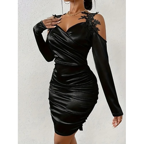 San Valentino Per donna Mini Abito Tubino Abito a spalle scoperte Elegante Festa cocktail All'aperto Feste Ospite di nozze Vestibilità regolare Tinta unica Manica Lunga Spallina Nero Rosso Beige