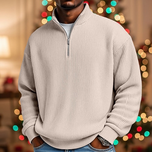 Per uomo Camicia di Velluto a Coste Polo Vacanza Streetwear Zip a un quarto Manica Lunga Moda Essenziale Tinta unica Cerniera Autunno Primavera Autunno Autunno Inverno Vestibilità comoda Nero
