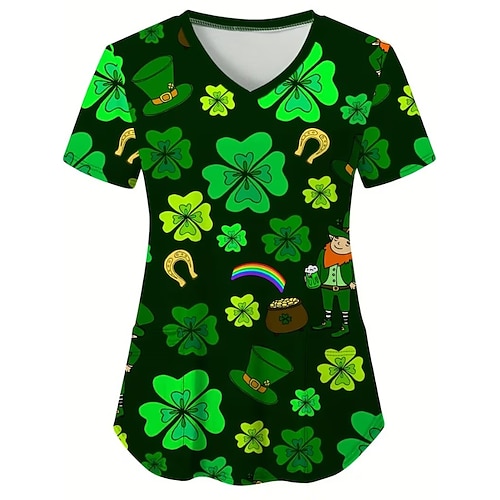 San Patrizio Festa di San Patrizio Per donna Maglietta Floreale Trifoglio Vintage Elegante Classico Manica Corta Scollo a V Top Regolari Quotidiano Stampato Nero Bianco Verde scuro Verde Estate