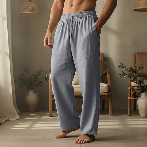 Per uomo Pantaloni di Lino Pantaloni Pantaloni Estivi Pantaloni da Spiaggia Coulisse Elastico in vita Tinta unica Comodità Traspirante Quotidiano All'aperto Spiaggia Vacanza Moda Blu Nero