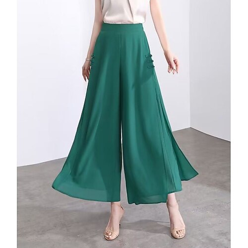 Per donna Gamba larga Chinos Elegante Moda Streetwear Lunghezza al polpaccio Vita Alta Semplice Comodo Comodità Morbido Micro-elastico All'aperto Vacanza Streetwear Verde mela Vinaccia blu navy Nero