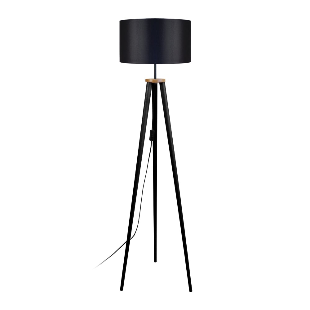 Lampada da terra legno ;Alt.155cm nero ;Paralume: nero