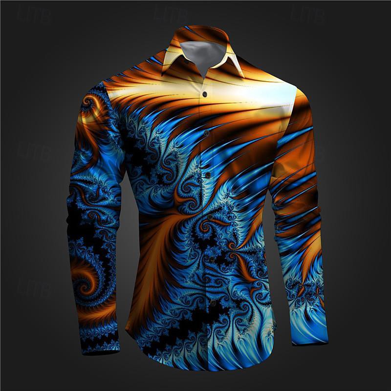 Men's Printed Shirts Long Sleeve Subcultural Vacation Party Street Spring Summer Turndown Print Button-Down Blue RedPink Red Navy Blue Purple
