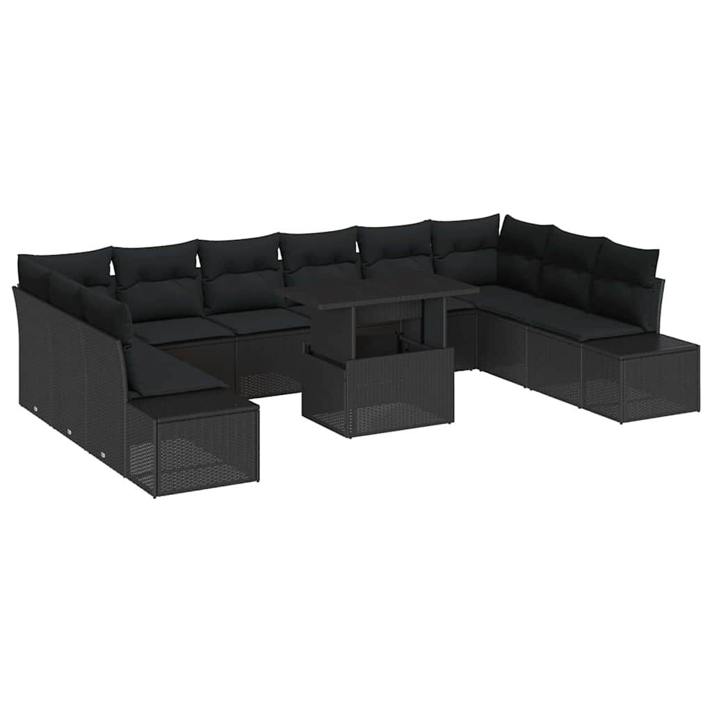 vidaXL Garten-Sofa-Set mit Kissen mit Speicher 11 pcs Schwarz