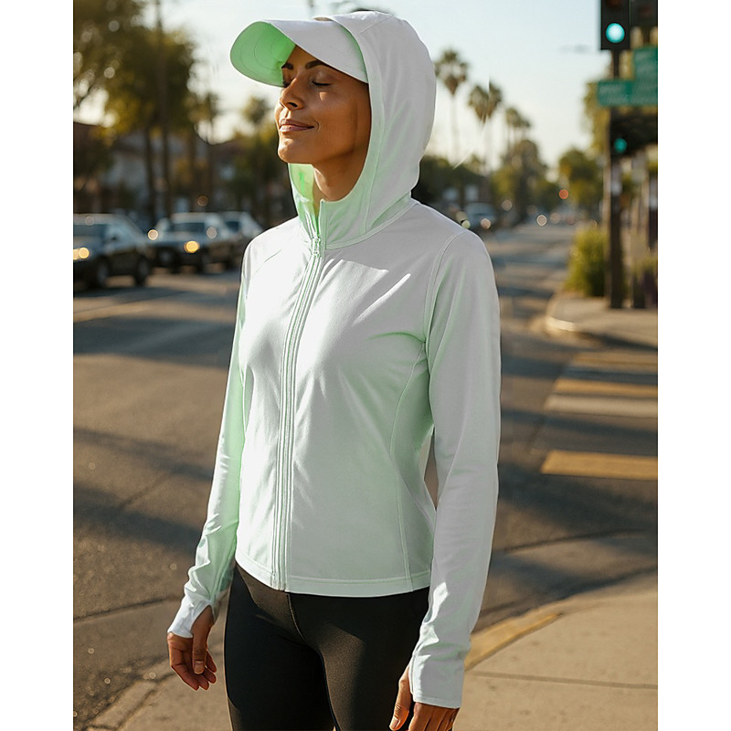Women's Running Jacket Outdoor Jacket Full Zip Long Sleeve Outerwear Athletic Solid Colored Sun Protection Quick Dry Lightweight UV Cooling Tennis Golf Running Sportswear Activewear White Yellow Army