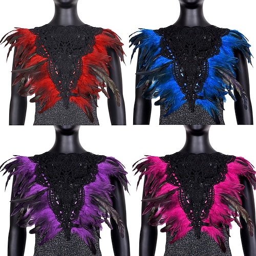 Karneval 2026 Rio Karneval Samba Zubehör Damen roter Federumhang mit großer schwarzer Spitzenapplikation gotischer Vampir Brasilien Festival Kostüm