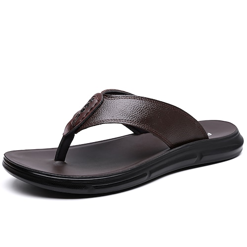 sandali da uomo in similpelle marrone, tomaia cucita a mano, plantare comodo, stile casual rilassato, adatti per il tempo libero estivo e per l'uso interno